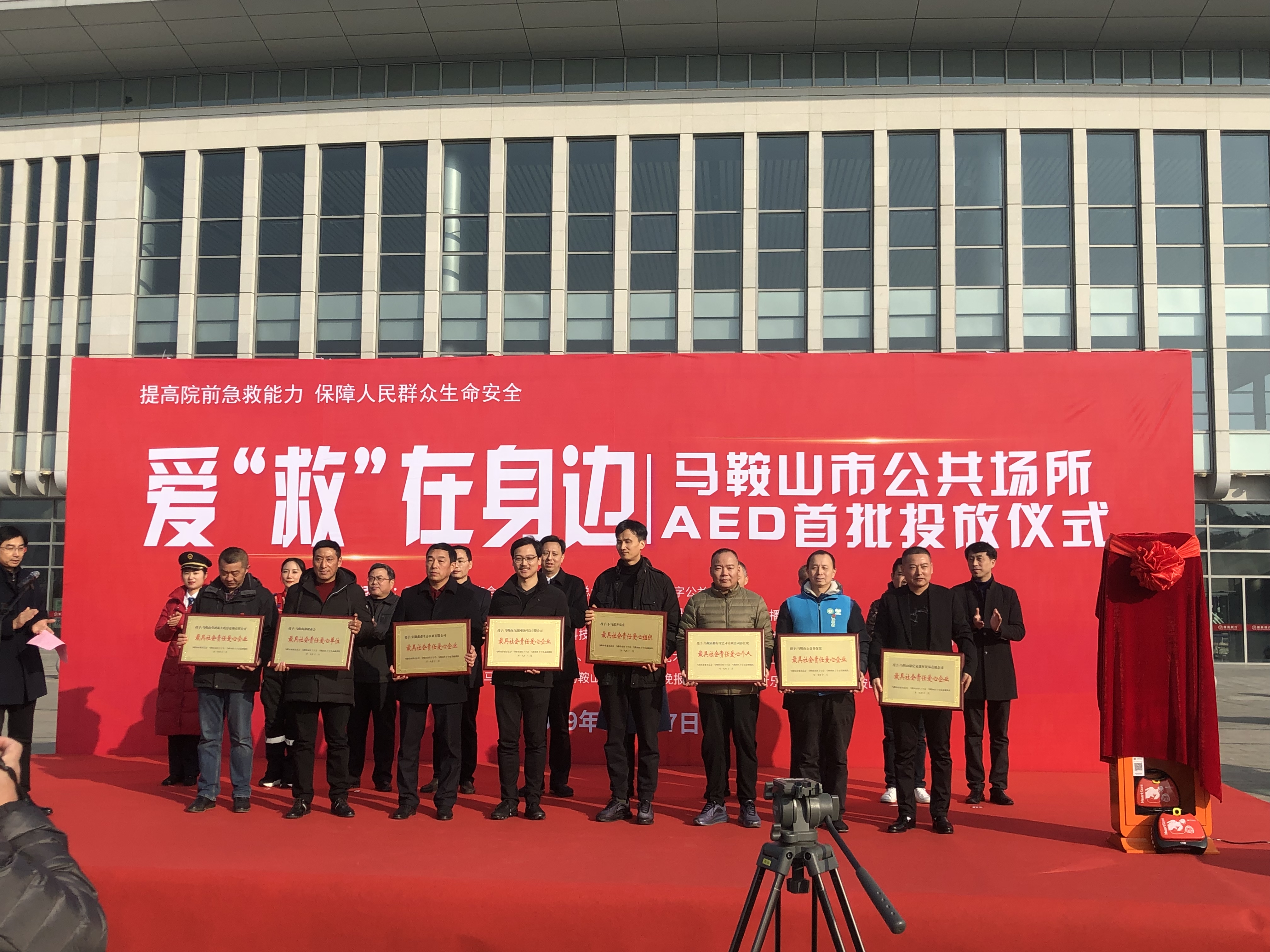 百助参加马鞍山市公共场所AED首批投放仪式并被授予“最具社会责任爱心企业”荣誉称号
