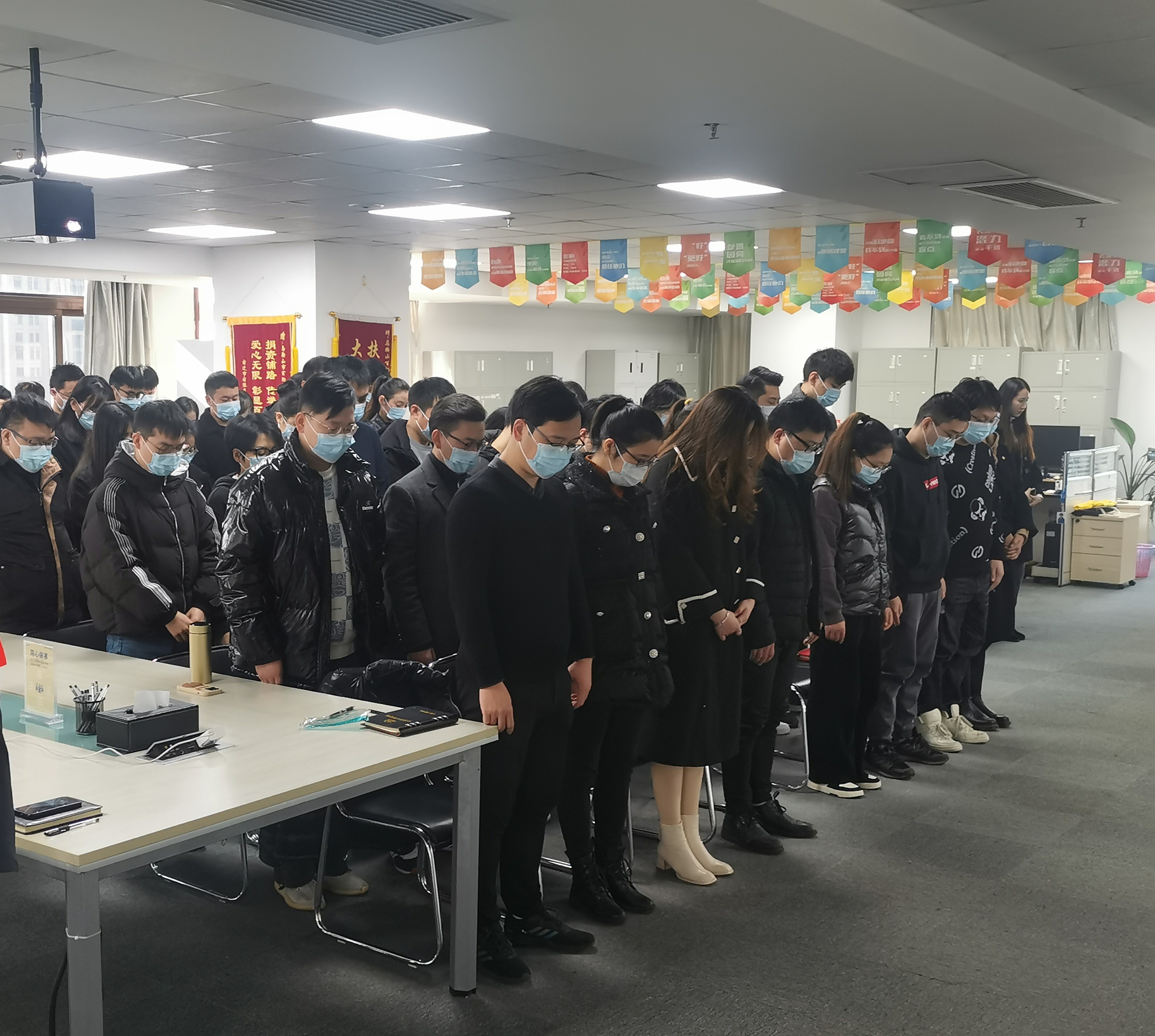 百助CEO程磊和公司党员干部,群众代表等在公司9楼会议室观看追悼大会的现场直播。
