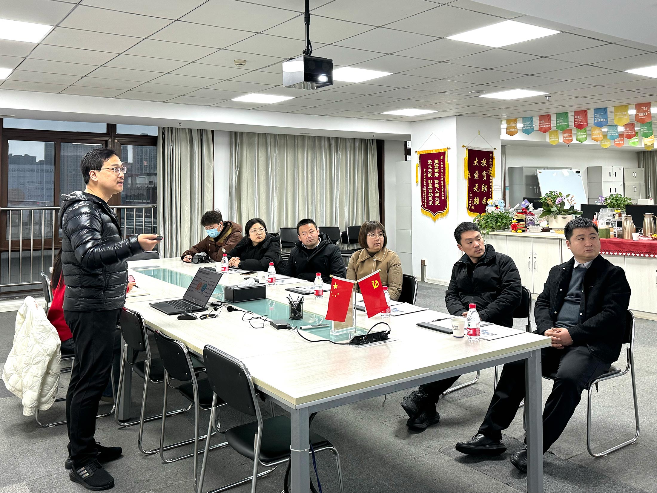最后,万颖书记代表团市委向百助全体员工送上了新春的祝福,祝愿公司在新的一年里取得更加辉煌的业绩。程磊对来访的领导一行表示衷心的感谢,并表示新的一年将会继续努力,全力推动公司的发展。