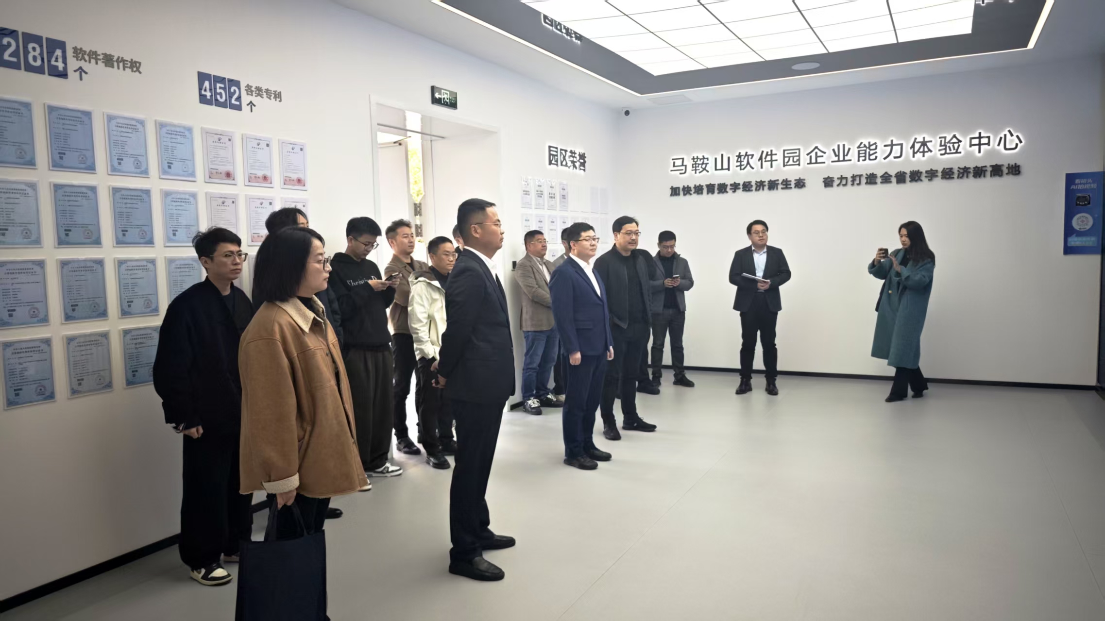 代表团调研了百助所在地花山区软件园并参观了软件园科技馆,深入了解马鞍山市在科技创新与产业孵化方面的成果与规划。