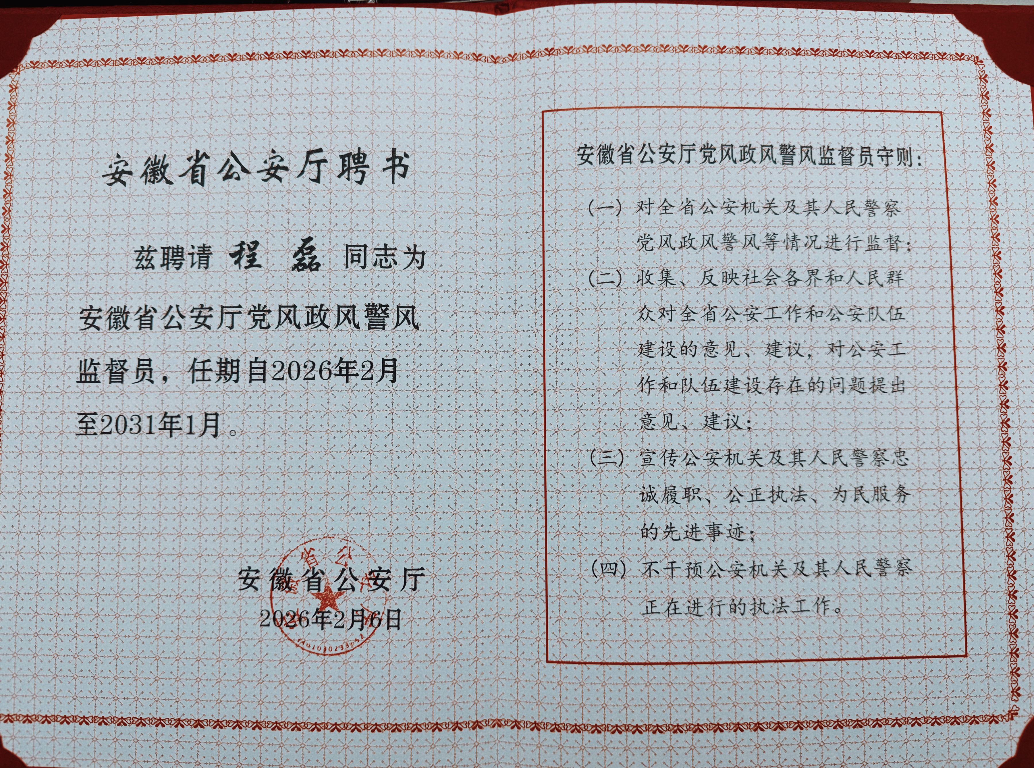 连任殊荣!百助 CEO 程磊再度获聘安徽省公安厅党风政风警风监督员